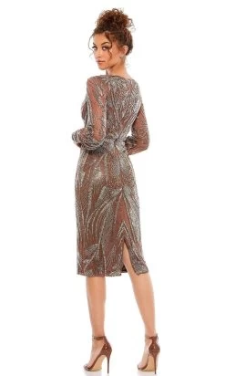 Mac Duggal Evening – 79337D Plunging Neck Sequined Midi Dress