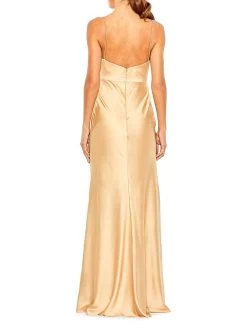 Mac Duggal’s glittering sequin-embellished gown is crafted of mesh and features a one-shoulder neck.