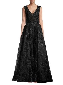 Elegant beaded and embroidered ball gown with a full tulle skirt.