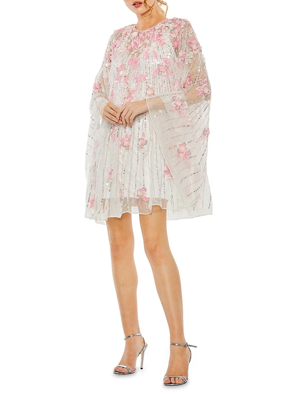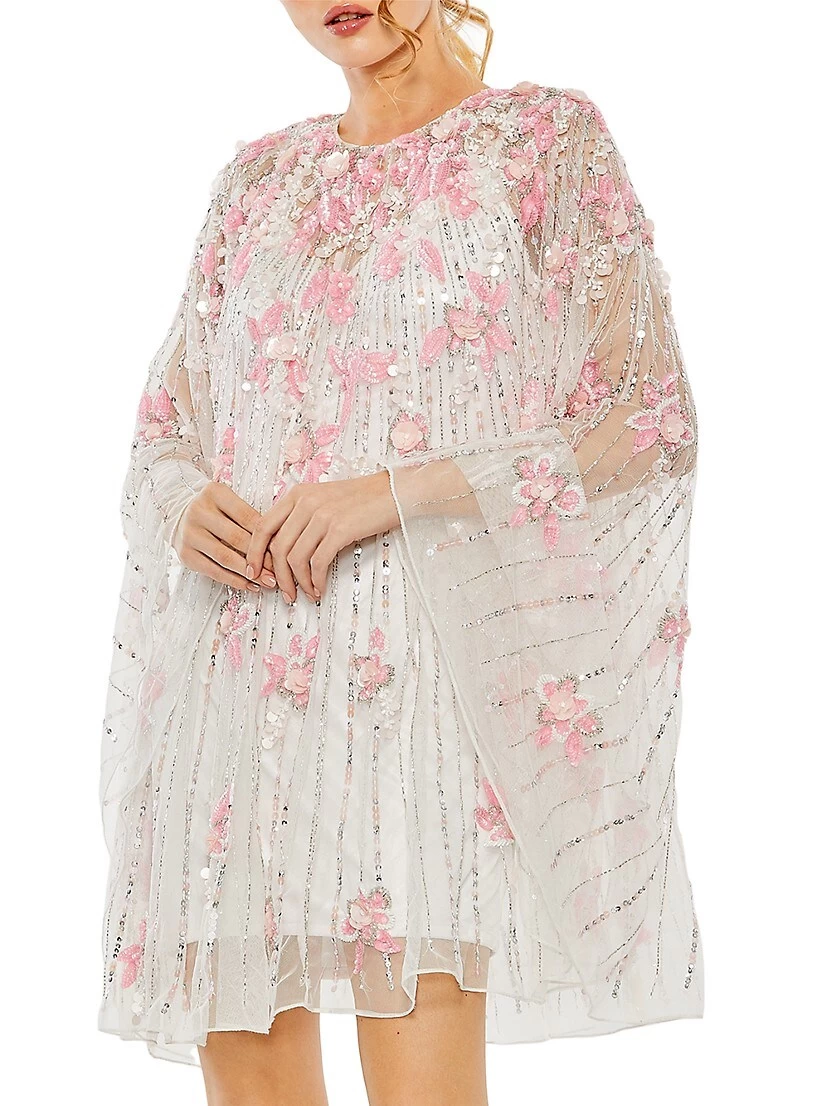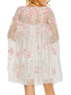 From the Mac Collection. Mac Duggal’s dazzling trapeze minidress is crafted of tulle. This draped style features an embellished semi-sheer overlaying a tonal slip.