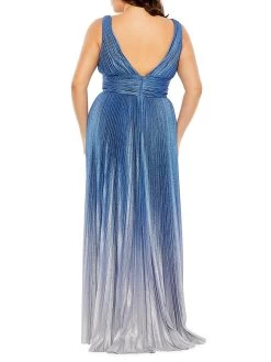 From the Fabulouss Collection. Mac Duggal’s stunning V-neck gown flows in soft pleats creating a romantic silhouette. Finished in an ombré design, this charming piece features a banded waist.