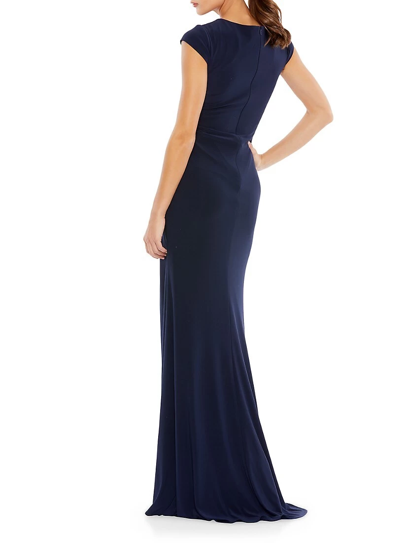 Crafted of an effortless matte jersey, this timeless gown flaunts a fitted V-neck and thigh-high slit.