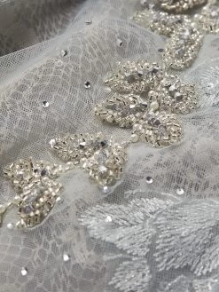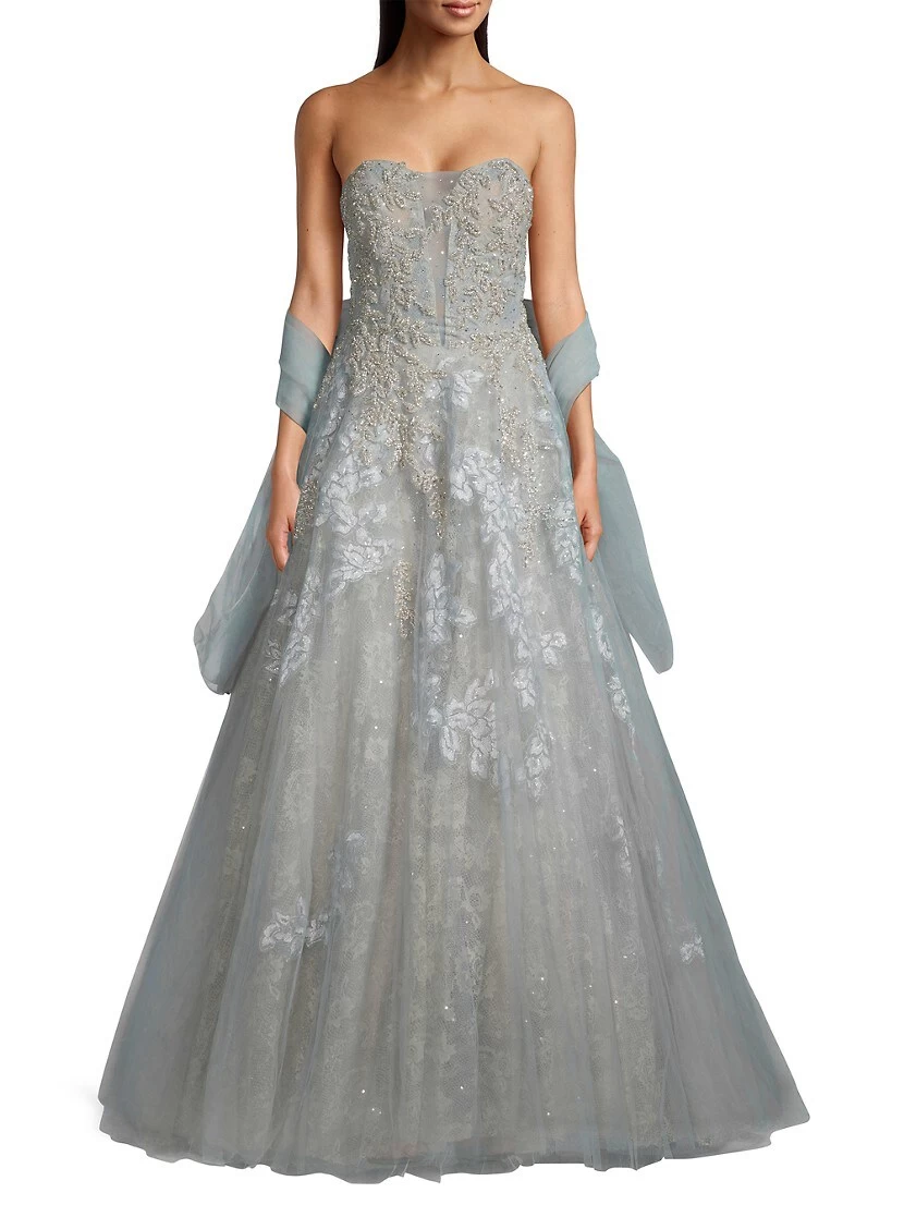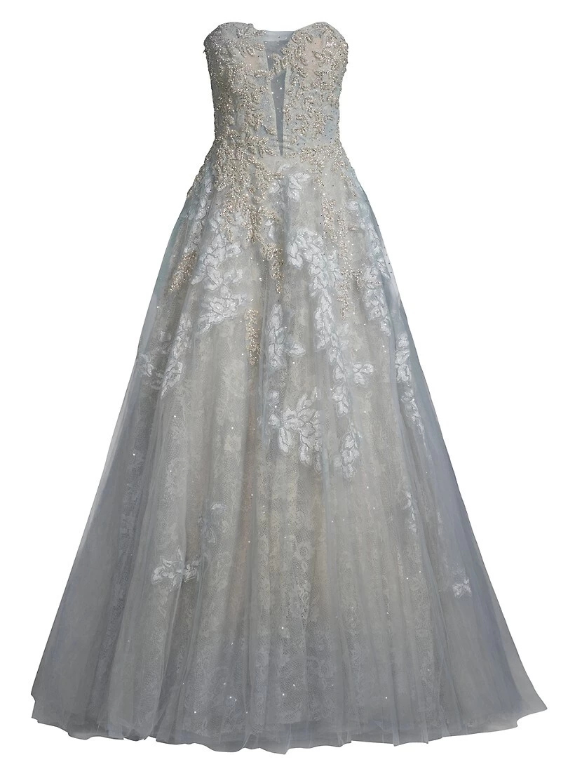 Decadent beading and lace lends refinement to this gown.