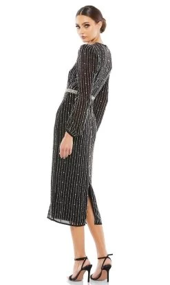 Show off your trendsetting style when you wear this dress from Mac Duggal 10748. Dazzles in a jewel neckline with flutter sleeves. The dress is richly ornate with embellishments from the fitted bodice down the sheath skirt and train finish. This Mac Duggal dress is ideal for red-carpet occasions. Find more Modest Prom Dresses.