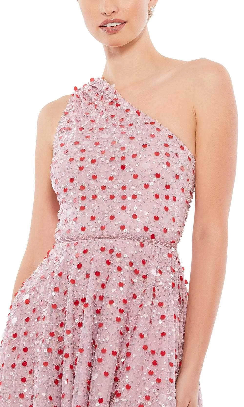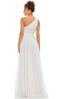 Glamour up for that perfect night in this Mac Duggal 10825 creation. Flatteringly ornamented with paillette sequins allover its length, this gown parades an asymmetrical neckline with a zipper closure at the back. Delicately embellished with a beaded waist, the A-line skirt flutters into a ruffled high low hemline. Fall in love with elegance in this Mac Duggal masterpiece. Exquisite attention to detail is the hallmark of Mac Duggal dresses. Mac Duggal dresses encapsulate the very essence of the women who wear them, reflecting their confidence, feminine power, and inner beauty.
