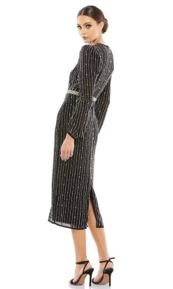 Parade a style that is stylishly romantic in this Mac Duggal 12444 creation. The floral lace silhouette is embellished with shimmering sequins. This beauty has a one shoulder neckline with a puff accented long sleeve. The sheath skirt dazzles as it streams to the floor. Be swept away by the enchanting beauty of this Mac Duggal masterpiece.