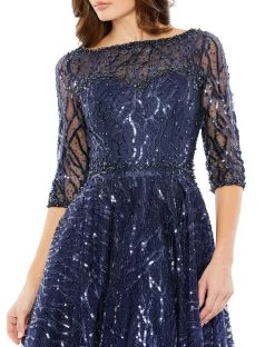 Fantasize a night of eloquent style and poise at your black-tie event in this Mac Duggal 20252 creation. Immaculately embellished with bead and sequin crafted on a mesh overlay, this dress features an illusion bateau neckline with a sweetheart lining and sheer quarter sleeves. Defined with a sheer full back and a zipper closure, the waist is festooned with embellishments. The adorned A-line skirt softly flares into a hemline just below the knees. Glow with mesmerizing beauty in this Mac Duggal masterpiece. Model is wearing the Platinum color.