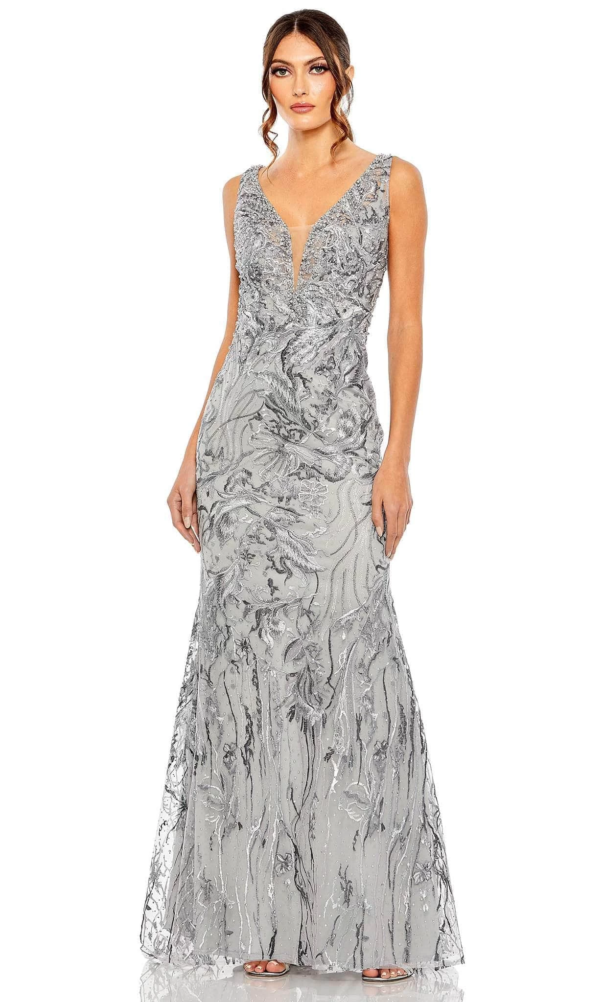 Indulge in an evening of refined elegance and composure at your formal gala, all while adorned in the charming Mac Duggal 20484. This gown boasts a plunging V neckline and a scoop back, imparting a sense of allure and sophistication. Additionally, the dress is equipped with a back zipper for seamless fastening. The trumpet silhouette of the skirt gracefully cascades down to the floor, further enhancing the wearer’s grace and poise. The outer layer of the dress is fashioned from sheer fabric, expertly embroidered with ornate patterns, lending an air of delicacy and refinement to the ensemble. With the Mac Duggal 20484, one is certain to make a lasting impression! Model is wearing Charcoal color.
