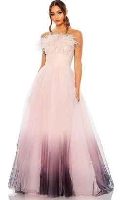 This Mac Duggal 20557, exudes temptress beauty and grace. Impress everyone in this tulle fabric made gown which flaunts a fabulous strapless neckline that is accented with feathers. Everyone will notice your figure-hugging bodice as it is styled in a ruched design. The full-length skirt parades in a ballgown silhouette with a sweep train finish and the back is closed with a center zipper. You will be a definition of feminine flair in this Mac Duggal 20557 masterpiece. Models are wearing Blue Ombre and Pink Ombre colors.