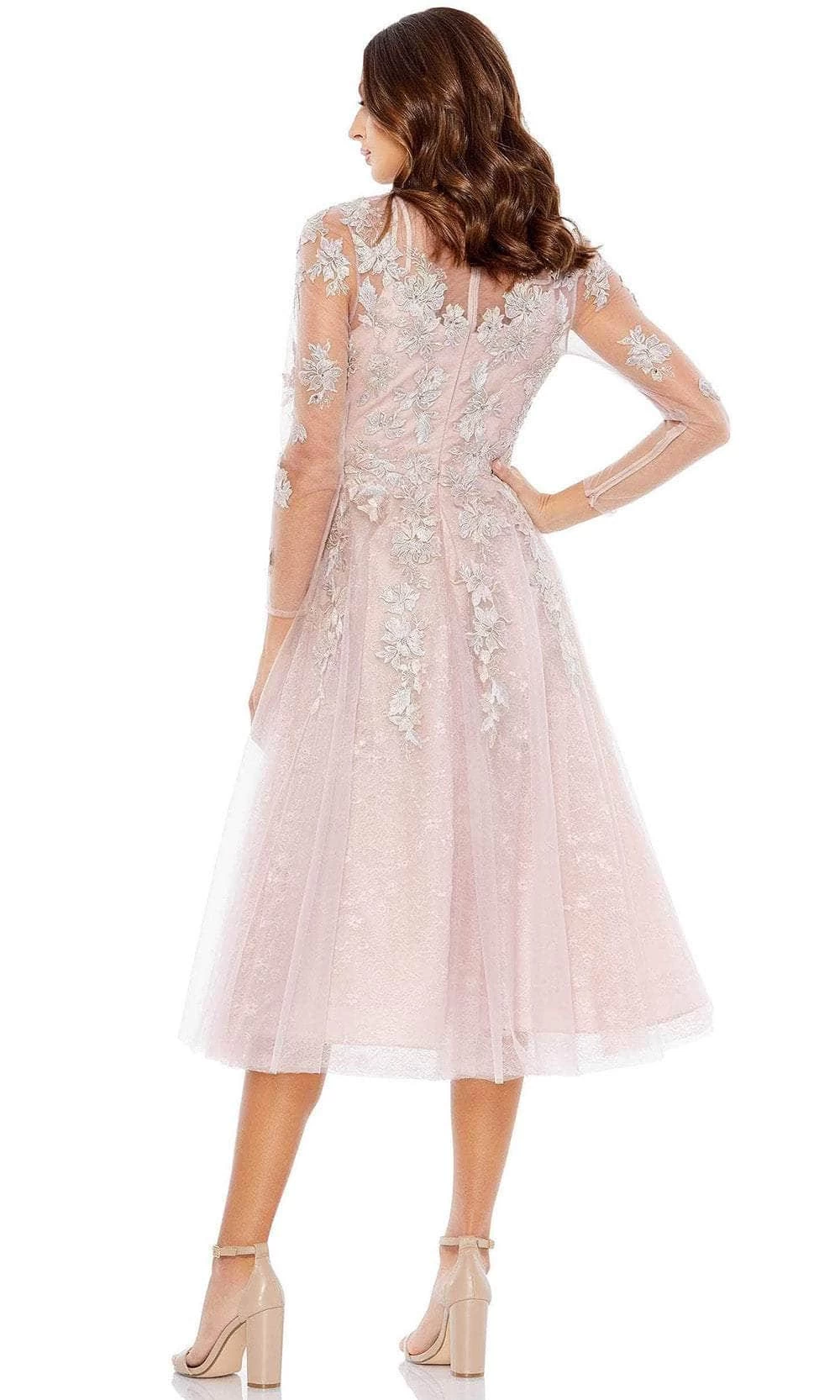 Mesmerize everyone in this charming creation by Mac Duggal 30681. Exceptionally ornate with floral embroidery and beads accents on a sheer lace bodice, this charming dress features an illusion bateau neckline and sheer long sleeves with zippered closure. Designed with a sheer full back, the skirt elegantly flares an A-line silhouette that runs at tea-length hemline. This Mac Duggal cocktail dress will let you celebrate that divine feminine beauty! Model is wearing the Vintage Lilac color.