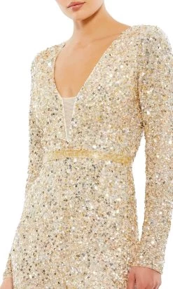 Get modern in a trendy jumpsuit from Mac Duggal 5411. This piece screams elegance and uniqueness, attending a formal event wearing this will make the guest jealous of your beauty as it is a jumpsuit that is designed with sequin throughout that will make you shine even in the dark. It has a plunging neckline with a sheer panel and a beaded waistline to emphasize your figure. Young girls can take delight in Mac Duggal dresses, this piece has a conservative alluring look because of the closed-back yet fitted bodice. Go with fun, gorgeous, and youthful 5411 by Mac Duggal. Model is wearing Nude color.