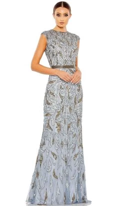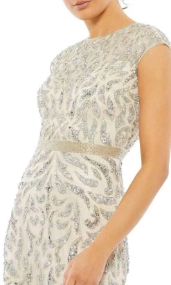 Be ready to catch everyones eyes in this creation by Mac Duggal 5532. Intricately sewn with sparkling beadworks all-over its length, this beauty features cap sleeves, an illusion jewel neckline with sweetheart lining. The partially sheer full back is secured by a center zipper closure. Accented with a beaded embellished waistband around the midriff, the skirt flows into a full-length sheath silhouette. This Mac Duggal design will definitely parade your elegant and classy style on your next formal occasion. Models are wearing the Silver/Nude and Platinum/Gold colors.