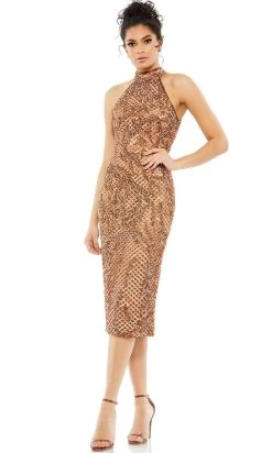 Look and feel so fabulous from head to toe in this Mac Duggal 5535 creation. Beautifully sculpted to embrace every feminine curve with sequins, this gown flourishes a high halter neckline on a sleeveless bodice. Charmed with a racerback, the sheath skirts sparkles as it ends with a below the knee hemline. Explore a style that is chic in this Mac Duggal masterpiece. Exquisite attention to detail is the hallmark of Mac Duggal dresses. Mac Duggal dresses encapsulate the very essence of the women who wear them, reflecting their confidence, feminine power, and inner beauty.