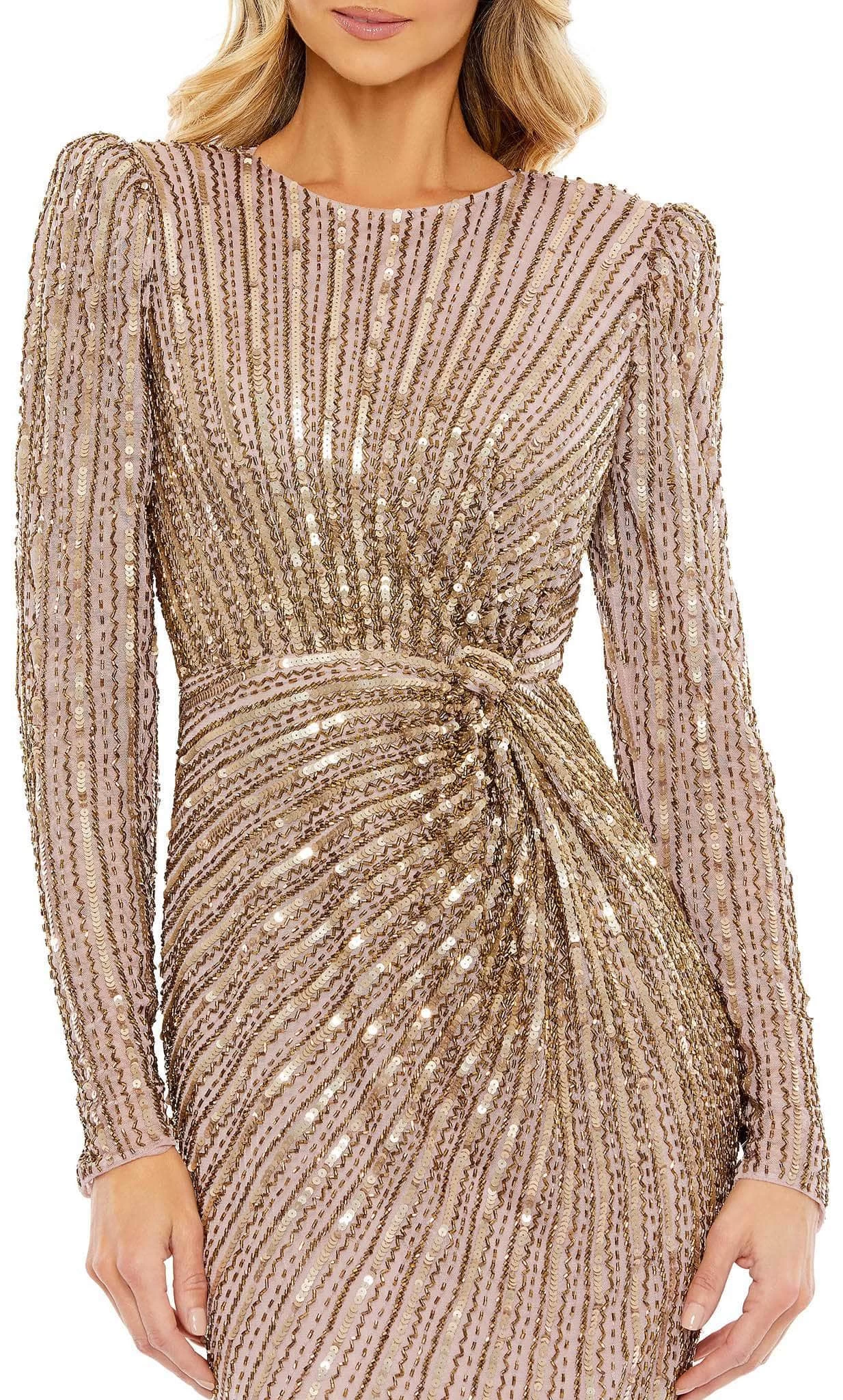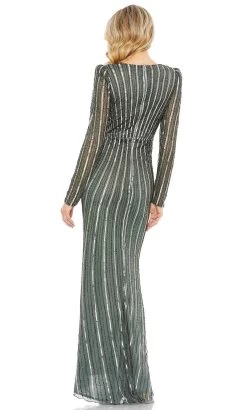 This gorgeous creation from Mac Duggal 5641 will make your night extra special. Amaze everyone as you shine glamorously with this winning piece embellished with shimmering sequins and beads. It is crowned with a jewel neckline and framed with long sleeves. The fully enclosed back is secured with a canter zipper closure and the skirt parades in a full-length column silhouette. Wrap up in this elegant style by Mac Duggal 5641. Models are wearing Mocha, Navy, and Slate Grey colors.