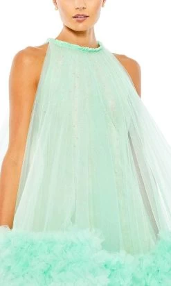 Look fabulous for your event as you wear this stunning dress by Mac Duggal 67954. Featuring a one-of-a-kind style, showing-off a voluminous silhouette in tulle overlay, which is perfect in hiding flaws yet drawing the attention to your lovely face with its high neckline, and toned arms with its sleeveless style. Blooming ruffle accents at the hem make this mid-thigh length dress ideal for showcasing your legs. Clothe yourself in a creative couture with this Mac Duggal masterpiece. Model is wearing the Mint color.