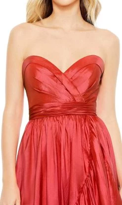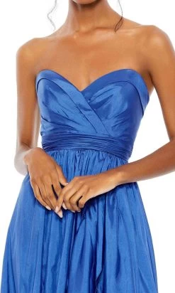 Go for a timeless and sophisticated look wearing this prominent dress by Mac Duggal 68040. This gorgeous ruched faux-wrap dress boasts a foldover detailing at the strapless sweetheart neckline and mid-open back. With a cinched wide band to define your natural waist, the full length skirt is styled with ruffle draping and flares a gorgeous A-line silhouette. An open slit and sweeping train finishes this amazing look. The night is yours in a spectacular creation from Mac Duggal 68040. Models are wearing the Cherry and Sapphire colors.