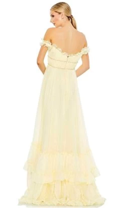 Show off your classy style when you wear this stunning Mac Duggal 68086 masterpiece. Stylishly designed with rhinestone embellishments in the pleated bodice that flatter your figure flawlessly, this gorgeous piece flaunts a sweetheart neckline in an off-shoulder frame. Reveals a mid-open back that is secured with a back zipper closure. The skirt forms a dramatic A-line silhouette and finishes in a sweep train. Mesmerize the crowd with your sophisticated flair in this Mac Duggal 68086 masterpiece. Models are wearing Mint and Butter colors.