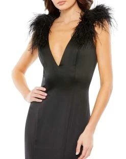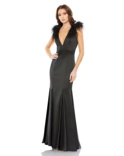You will never go wrong in this timeless and sophisticated dress from Mac Duggal 68137. Sleek design in luxurious fabric with feather accents boasts this minimalist dress. Tailored in a sleeveless frame, this stunner features a plunging V-neckline with visible seams to enhance your beautiful assets. A full back with zipper closure parades the classiness of the dress into a full-length hem. Show your sophisticated sense of style in Mac Duggal. Model is wearing White color. Find more Feather Dresses.