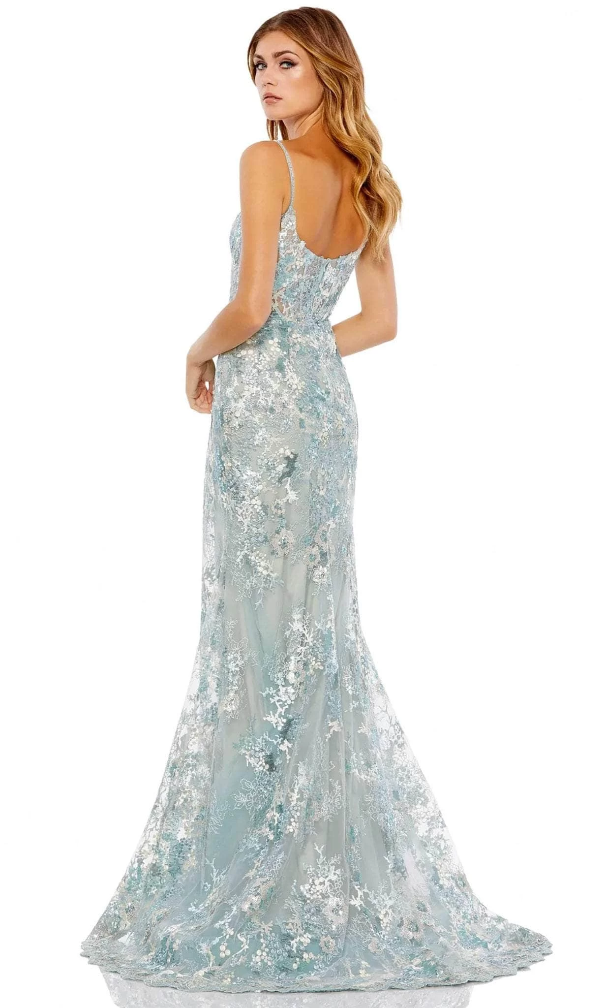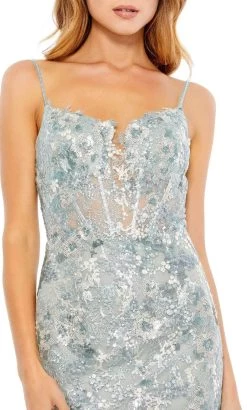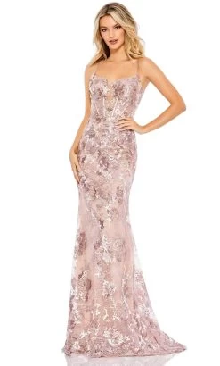 Let the charm of your presence be in this amazing Mac Duggal 79297 creation. Beautifully designed with glamorous embroideries to complete a gorgeous look, this winning flaunts a sweetheart neckline. The corset sleeveless bodice held in place with spaghetti straps perfectly matches the mid-open back that is secured with a center zipper closure. The fabulous skirt parades in a trumpet silhouette and has a floor-length hemline and end with a sweep train. Mesmerize everyone with your charming presence in this enthralling Mac Duggal 79297 masterpiece. Models are wearing Ice Blue and Rose Pink colors.