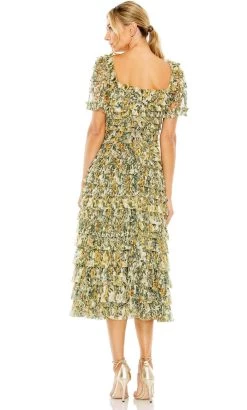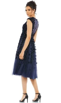 Fall in love with the exceptional beauty of this couture quality Mac Duggal 8055 creation. Intricately detailed with tiers of ruffle details festooning its length, this exquisite piece reveals a high neckline and accented with semi sheer short sleeves. Capturing a perfect combination of ruffle patterns, this tailored piece reveals a lined silhouette with a full back. Details of embellishments texture the skirt as it creates an A-line silhouette with a tea length hemline. Astound everyone with an impressive spectacle in this mesmerizing Mac Duggal masterpiece. Models are wearing the French Blue, and Rose colors.