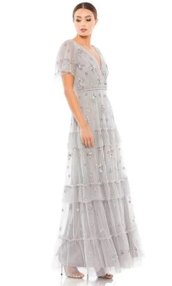 Put on this gorgeous beauty from Mac Duggal 9068 and draw admiring looks. This stunner is crafted from polyester fabric and features a V-neckline framed with sheer short sleeves with a V-neckline. The entire dress is glamorously embellished with delicate floral sequin accents that bring a gorgeous appearance. The V-shaped back is secure with a center zipper closure and the tiered skirt parades in an A-line silhouette. Show off your softer side in this lovely floral dress by Mac Duggal 9068 masterpiece. Models are wearing Platinum and Black colors.