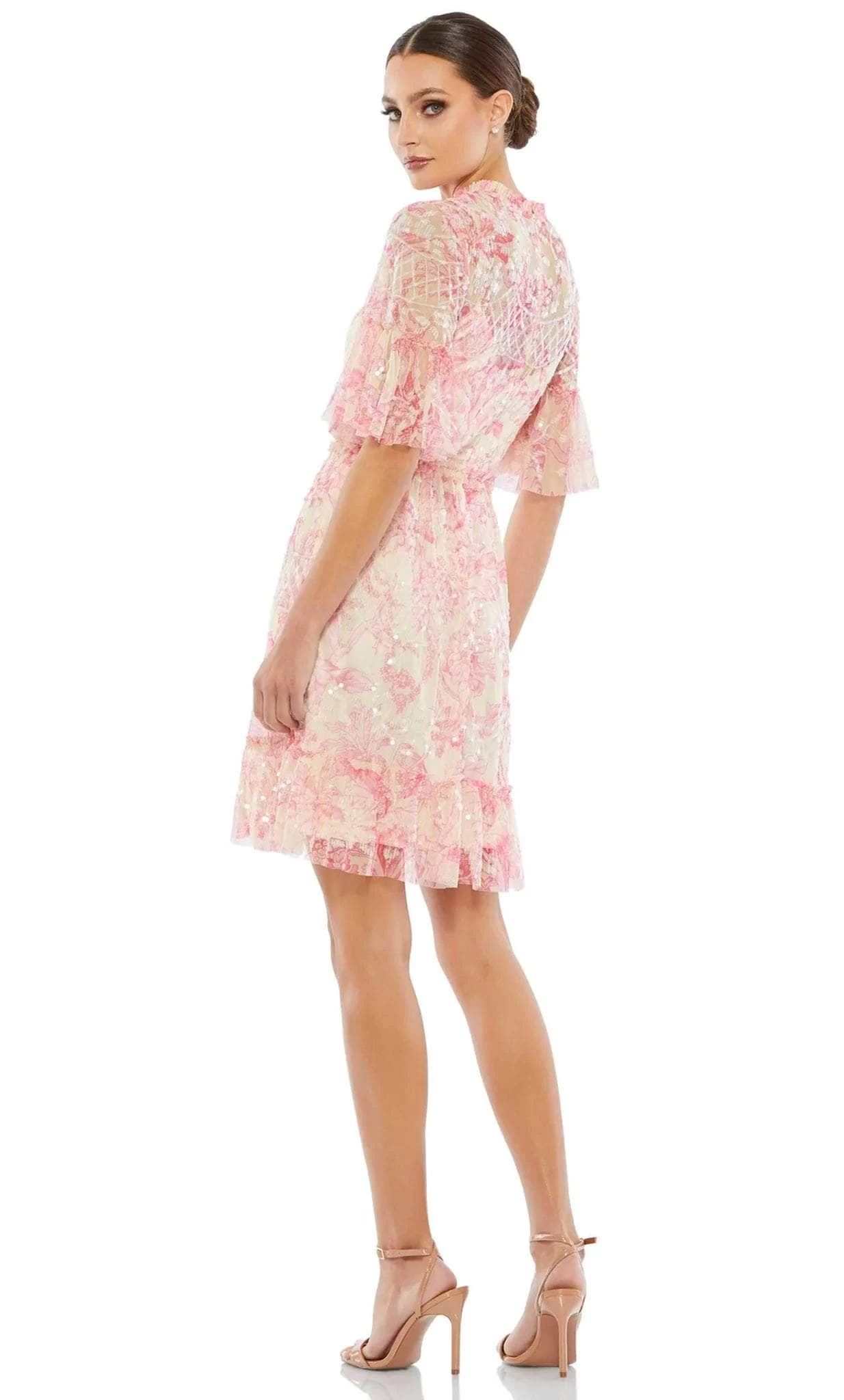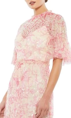 This enchanting piece from Mac Duggal 9148 is sure to make you the center of everyones attention. This dress is perfect for a fresh, casual look with its print-designed fabric. Featuring high frilled neckline and flounce sleeves. It gives a flowy effect with its lightweight and airy A-line silhouette that ends in a mid-length. Closes using that back zipper closure. This dress from Mac Duggal 9148 is sure to be both comfy and fashionable. Model is wearing Blush Multi color.