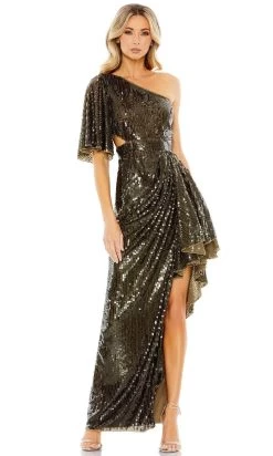 Make your special night an interesting one as you wear this gorgeous Mac Duggal 93662 evening dress. This dress has a unique cut-out portion at the bodice with an asymmetrical neckline and a single flattering short sleeve which will give you an extra stunning appeal as you wear this dress. Gorgeously embellished with glittering sequins that will make you shine like a diamond. The sheath skirt is detailed with cascading high lo front ruffle slit. Look good and feel good with this extravagant evening dress from Mac Duggal 93662. Models are wearing Mauve and Olive colors.