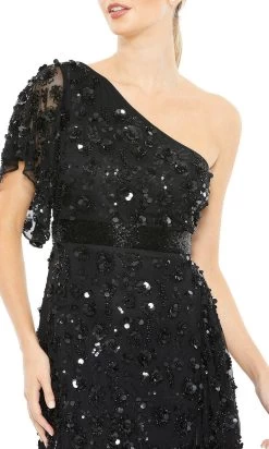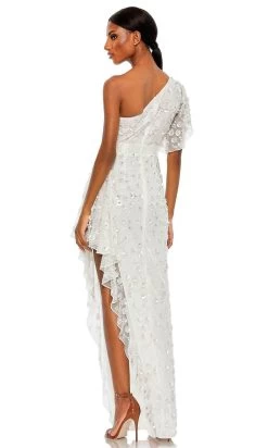 Be exemplified as the darling of the night in this Mac Duggal 93687 creation. Designed in 3D floral appliques and sparkling embellishments all over, this exquisite piece shows an asymmetrical neckline supported by one shoulder strap with sheer sleeve. It has an open back and a defined beaded waistband. The skirt is also designed in an asymmetrical high low ruffled hemline for a more feminine touch. This Mac Duggal creation is an instant refresh for your eveningwear repertoire. Exquisite attention to detail is the hallmark of Mac Duggal dresses. Mac Duggal dresses encapsulate the very essence of the women who wear them, reflecting their confidence, feminine power, and inner beauty. The models are wearing Black and White colors.