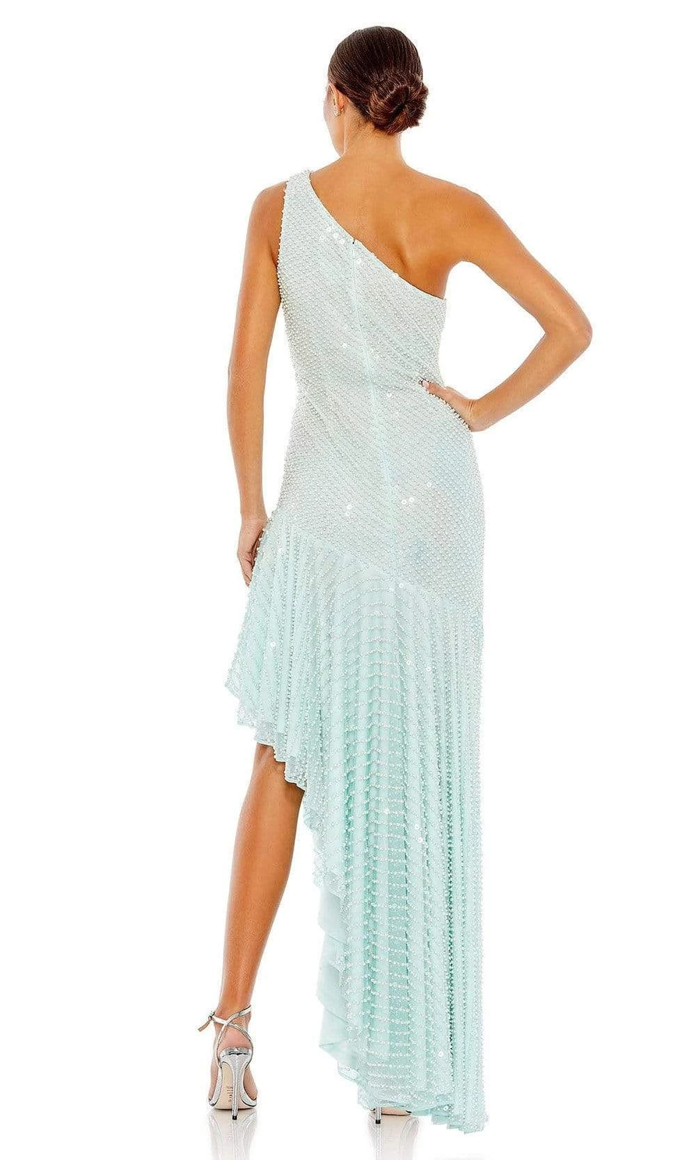 Create the illusion of sophistication in this Mac Duggal 93741 creation. Exceptionally rendered with pearl-beadwork, this gown flatters with a one shoulder neckline and a partial open back. The trumpet skirt skims and flares into a high low hemline. Liven up the party in this exquisite Mac Duggal masterpiece.