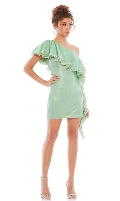 Charm everyone with the impeccable style of this Mac Duggal 10800 creation. Sleekly sculpted with sequins, this piece reveals draping foldover accents wrapping its one shoulder bodice. Streaming with a ruffle accent, the skirt skims into a short hemline. Grace the party like an iridescent vision in this Mac Duggal masterpiece. Find more Short Dresses.