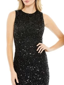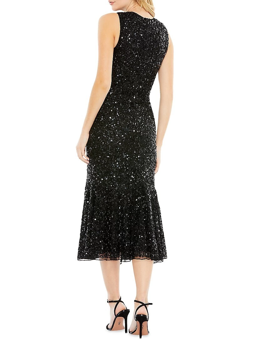 From the Cocktail Collection. This Mac Duggal midi-dress features a sparkling metallic finish.
