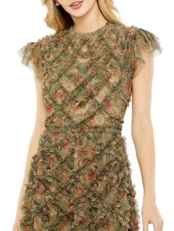 From the Cocktail Collection. Finished with cap sleeves, this Mac Duggal midi-dress is designed with layers of elegant ruffle fabric.