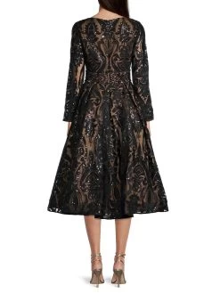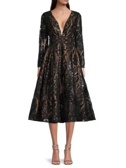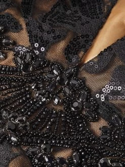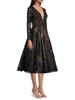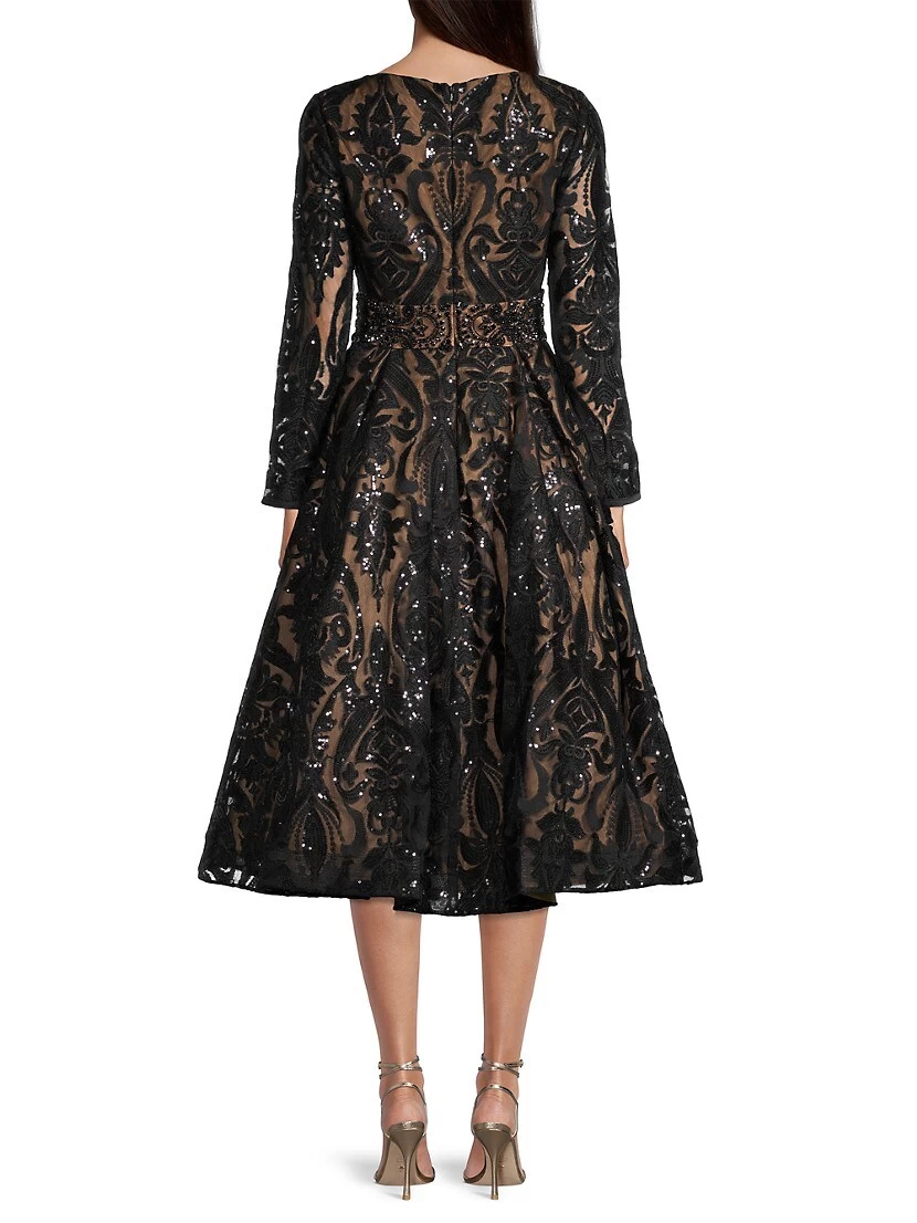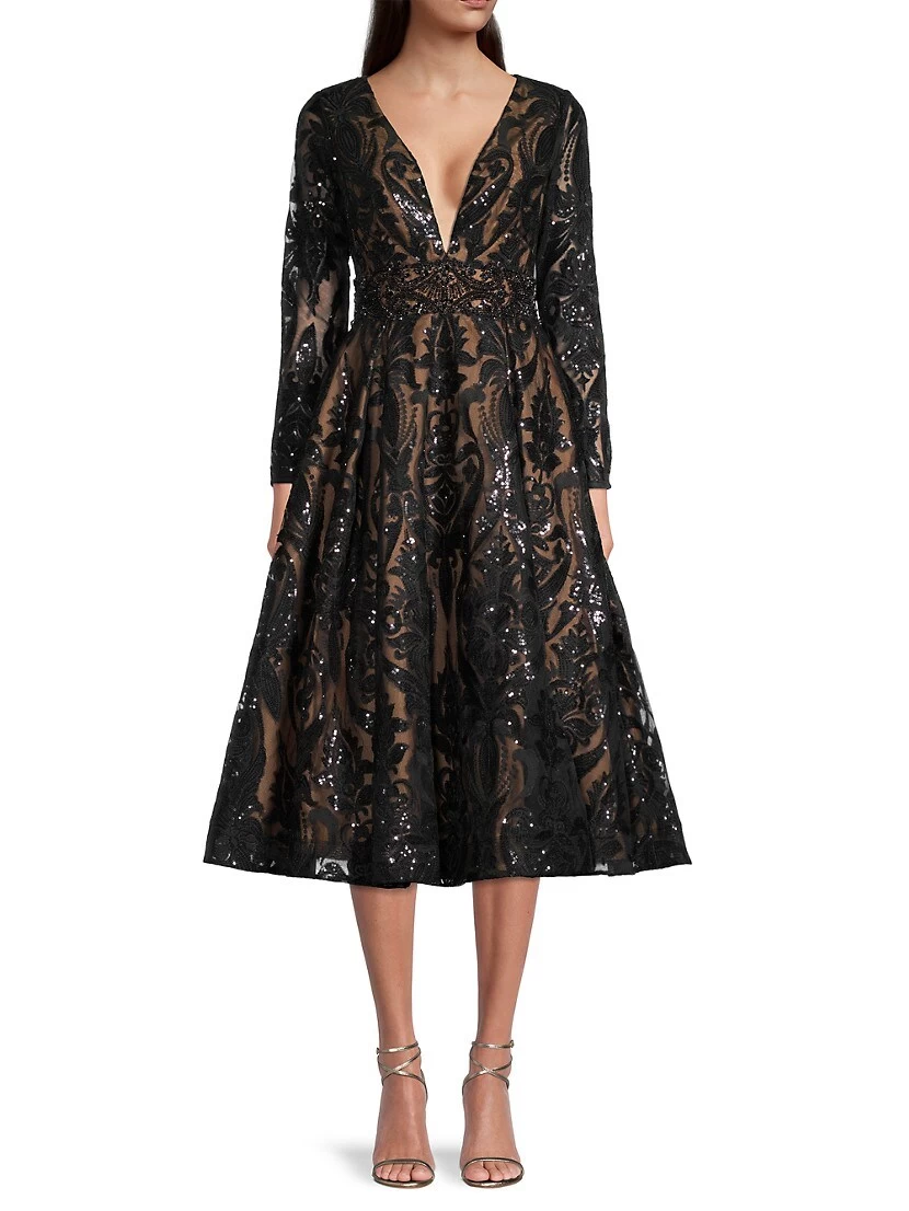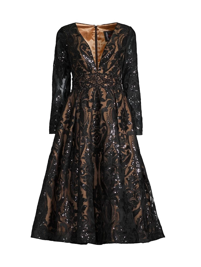 Dainty embroidery with delicate sequins lends romance to this dress.