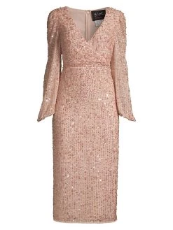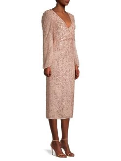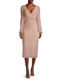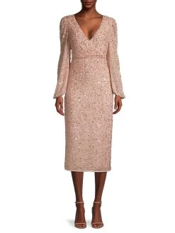 Tonal beading and sequins add shine to this empire waist midi dress.